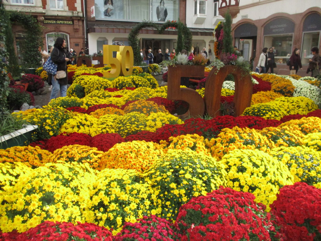 Bei bestem Wetter machten sich am Mittwoch, den 29. Oktober zehn Teilnehmer mit Wanderführer Josef Müller per Bahn auf den Weg zur Chrysanthema in Lahr. Strahlender Sonnenschein brachte die herrlichen Farben der Chrysanthemen zum Leuchten. Die Betrachter waren von dem bunten Schauspiel begeistert und genossen den schönen Herbstnachmittag.